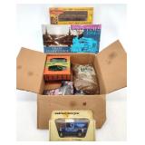 621 LIFELIKE TREES, EARTH & COAL BAGS, HO PRR F7 B, VEHICLE, TRAIN ALARM CLOCK