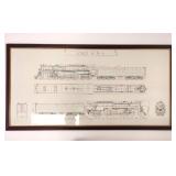 160 MTH ATSF 4-8-4 NORTHERN DRAWING/PRINT IN FRAME 45"L X 23"T
