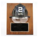 216 PLAQUE WITH FIREFIGHTER HELMET PRESENTED TO MTH FOR CONTRIBUTIONS ON 9/11/01 15"W X 18"T