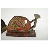 1 Primitive Wood Slat Bucket with Wood Bandings 2 4 Gallon Freehand and Stencil Decorated Blue & Gray Stoneware Crock Samuel Hooker Louisville, KY. - Couple Chips & Hairline 3 Stoneware Canning Crock 4 Brass Whale Oil Lamp 5 Parnall & Sons Bristol Brass Weights 6 Paint Decorated Carved Wood Face Mask 7 Paint Decorated Carved Wood Mask With Horns 8 Small Brass Carriage Clock Made In France 9 Early Framed Tapestry 10 Framed Dried Wild Flowers 11 4 Stripe Blue & Gray Stoneware Decorated Crock 12 Brass Fireplace Screen 13 Early Hand Tinted Maps of England, Scotland and London Circa 1850's Engraved by J&C Walker 14 3 Early Maps - Europe (GW Boynton) 1841, Hand Tinted Map Russia Sweden & Norway 1860 and Hand Tinted Map Ireland & Scotland 1860 15 3 Hand Tinted Russia Maps Circa 1852 16 Hand Made Danish Quality Pewter Tea Service w/ Tray 17 Longaberger Hinged Basket w/ Cloth Liner 18 2 Longaberger May Series Baskets - Daisy & Geranium 19 2 Longaberger Floral Pattern Clothed Lined Baskets 20 J.P. Sauer & Sohn Suhl Cal. 7.65 Pistol S&S 125549 21 Walther Carl Walther Waffenfabrik Ulm/Da Modell PPK Cal.-22 l.r. Pistol W. Germany 105386LR 22 Browning Arms Company Cal. 9MM Pistol Made In Belgium By Fabrique Nationale Herstal 245PT07317 23 German Nazi Luger S/42 "G" Stamp 6012 Pistol 24 German Walther Mauser P38 byf 42 135 6265 with Original Holster 25 WWI US Army Military Uniform 26 WWII US Army Military Uniform w/ Patches and Pins 27 US Naval Outfit and 2 Long Coats 28 WWII US Air Raid Wardens Helmet 29 Silver Military Helmet with Blue Cross, Camo Cover, Liner 30 2 German Nazi Pins - Repos ? 31 Assorted Cap Pins / Badges 32 German Nazi Red Cross Medics Patch 33 Adams & Westlake Railroad Lantern with Red Glass Globe 34 Dietz Vesta URR Railroad Lantern 35 EL Railroad Kerosene Can 36 4 Vintage Miners Lights 37 Stencil Decorated Blue & Gray Stoneware Crock Hamilton and Jones Greensboro - Small Hairline 38 Two Tone 5 Gallon Stoneware Jug - Damage See Pics 39 Antique Betty Lamp 40 Brass Carbide Miners Lamp 41 4 Piece Brass Door Bell 42 Rare Large Shiny Brite Glass Christmas Bulbs 43 Assorted Vintage Glass Christmas Ornaments 44 Zippo Advertising Corona Lighter 45 Vintage Zippo Lighter Advertising Bowman w/ Original Box 46 Yamaha Trumpet w/ Case 47 6 String Acoustic Guitar w/ Case 48 Reuge Music Box w/ 3 Separate Players - One Has Broken Tooth - Working 49 Three Cent US Paper Note 50 Assorted Foreign Coins and Paper Note 51 3 US Proof Sets - 1983 , 84 & 85 52 3 US Proof Sets - 1983 , 84 & 85 53 3 US Proof Sets - 1980 , 81 & 82 54 3 US Proof Sets - 1980 , 81 & 82 55 3 New In Box Models - Monogram USA/USSR Missile Set, Lindberg Firepower Series F-1000 Super Saber and xf-88 Voodoo 56 Revell USS Enterprise Aircraft Carrier Model 57 Assorted Plastic Army Figures and Others 58 2 Soldiers of the World - The Rough Riders Buffalo Soldier and Confederate Leaders on the Eve of the Battle of Gettysburg 59 Lionel Lines Train Set - Ready To Run Electric O-Gauge Set 60 Fisher Price Family Farm, House and Holiday Inn 61 Tin Advertising Signs - Miller Lite, Budweiser and Jägermeister 62 Tin Signs - Bogart, Movie Tickets, The Wizard of Oz and Missouri Pacific Railroad 63 3 Cookies Jars Including Mr. Peanut - 1 Has Chips 64 Clown and Monkey Banks / Figures 65 Antique Oak Curved Sided Display Cabinet 66 2 German Silver Rings - Green Onyx and Opal 67 2 German Silver Rings - Lemon Quartz and Blue Topaz 68 3 German Silver Rings - Amethyst, Black Onyx and Labradorite 69 3 Longaberger Baskets 70 Longaberger Serving Basket w/ Plastic Serving Dish with Lid 71 3 Patriotic Longaberger Baskets 72 Stick and Ball Coat Rack 73 Freehand Stripe and Stencil Decorated Stoneware Crock Hamilton & Jones Greensboro Greene Co. PA. 74 Brown Glazed Stoneware Crock and Jug 75 Brass Whale Oil Betty Lamp w/ Bird Finial 76 Pair Wrought Iron Hand Forged Sticker Hook Hangers w/ Bird Motif 77 The M. C.Lilley & Co Columbus OH Ceremonial Sword 78 The M. C.Lilley & Co Columbus OH Ceremonial Sword 79 Brass Weight Set 80 2 Brass Weights 81 Assorted Pipes and Pipe Cleaning Tools 82 Assorted Vintage Keys 83 84 2 Cast Iron Frog Door Stops 85 2 Panel Blue and White Coverlet - Signed J. Packer & Brownsville 1838 For 66x94 86 Stoneware Crock w/ Handle 87 14K Gold Rope Chain Marked Mexico - Approx. Weight 2.31 Grams 88 Cigar / Cigarette Cutter Marked 1909, Pin, Cuff Links, Ring and Stick Pin 89 3 Antique Framed Colored Lithographs by Tho. H. Shepherd 90 Framed Watercolor by JS Brewer Dated 1843 Church Cemetery Scene 91 Early Lithograph Entitled Age and Infancy by Marshall Engraved by Robt. Mitchell Dated 1856 92 Early Hand Colored Map of China by John Cary Engineer Dated 1801 93 Colt Single Action Army .38 Special Revolver Colts PTFA Mfg. Co. Hartford Ct. USA with Stag Grips 61598A - Super Condition Possibly Never Fired Second Gen. 1956-57 94 Original Mauser Modell HSc Made In Germany 7.65 .32 ACP Automatic Pistol Mauser-Werke A.G. Oberndorf a.N. 00 7093 95 Bauer Firearms Corp. 014583 S .25 Cal. Auto Model 25SSp Pistol w/ Original Box 96 Smith & Wesson 38 Spl. Engraved w/ Gold Accents Snub Nose Revolver , Stag Grips 77405 97 Smith & Wesson .22 Escort Model 61-2 22 Long Rifle CTG with Original Box B30715 98 3 US Military Dress Jackets 99 2 US Military Long Coats 100 Military Long Coat and Wool Jackets 101 102 USN Gas Mask ND Mark V w/ Pouch 103 Blue Tipped Bullets 104 6 Ribbon Medals 105 Poker Girls Nude Playing Cards Made In Western Germany 106 Models of All Nations Vintage Nude Playing Cards 107 Binder Loaded w/ Vintage Paper Items 108 Binder of Vintage Liberty Magazines 109 2 Framed Needle Works - Maps 110 PRR Pennsylvania Railroad Adlake Non Sweating Caboose Marker Lamp 111 Zippo Lighter w/ Case 112 Zippo Lighter w/ Original Box Advertising R.F. Kleinfeldt Co. 113 Penguin Aunt Jemima Lighter 114 Small 4 Drawer Chest 115 Hand Made Reeds Concert Band Tremolo Button Box 116 Vintage Cameras and Accessories - Minolta 7000 Maxxum, Minolta Maxxum 2800 AF Flash, 70-210 Len