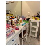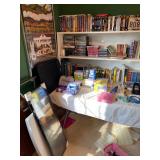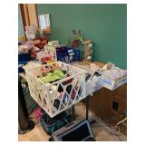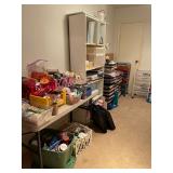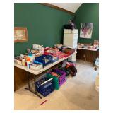 Lovely home in Deerfield Village packed full, 2 rooms of craft supplies, Garage & patio Note: all craft supplies are on the second floor - papers, cutouts, stencils, cutters, ribbons, books, boxes, sequins, buttons, decorations Pedestal table with 2 leaves and 8 chairs, wood table with 2 leaves and 6 chairs, leather sofa, pair Sherrill club chairs, Council Craftsman lamp table, 3 ottomans, patchwork wood table, Vintage Singer sewing machine, rustic credenza, marble top dresser with 3 way mirror, small 3 drawer chest, two baker racks, pair Safavieh chairs, low tv table, baby bed, white chest, vintage rocker and kitchen cabinet, cedar wardrobe, Refrigerator, washer & dryer, Sessions Wall clock, Towel Sterling, Spode "Chelsea Garden" china, Stonehenge "Midwinter", white stoneware, Bar ware, Crystal, Candles, lots of decor items, framed art, lamps, luggage, records, cd/dvd, Electronics, flat screen tv, linens, small storage cabinets, storage containers, Books, Baskets, cookware, small kitchen appliances, Christmas decorations & lights, Toys: Barbie dolls, Games, Cabbage Patch Dolls, books, candles, punch bowl, entertaining & serving dishes, flatware, cameras Patio furniture, flower pots, large dog crate & dog items, hand tools, garden tools, coolers, Chest deep freezer |