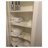 LINENS: Bath towels, twin sheet, queen sheets, cal. King sheets, sheet sets, pillows, duvets, pillowcases, kitchen linens, and table clothes.