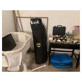 OUTDOORS: plants, outdoor seating, camping items, sleeping bags, some tools, foldup canopy, garage door opener, plus.