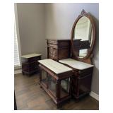 WHAT IS IN THIS AUCTION? This online auction features furniture such as entertainment center, display cabinet, dresser, four poster bed, marble-top vanity, dining table and dining chairs, décor such as wall mirrors, glassware, canvas art, and Ridgeway grandfather clock, electronics such as Sony TV, cookware such as cast iron skillets, Christmas decorations such as figurines by United Design, Hallmark, and Fitz & Floyd, crystal such as vase and figurine, and much, much more!