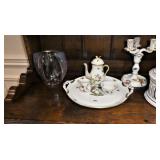 Crystal by Lalique, Baccarat, Steuben, Orrefors, Tiffany, Val St. Lambert, Kosta & Simon Pierce Herend “Rothschild Bird” porcelain including many serving pieces Minton “Symphony” China Service for 16 Vicke Lindstrand etched Swedish crystal Laguna B. Murano hand blown glasses by Marie Brandolini Cartier crystal champagne flutes Ralph Lauren Classic Herringbone wine glasses Set of 10 Alessi Ginerva champagne flutes Set of 14 Baccarat Azay crystal wine stems Large Italian green/white ceramic bowl Elsa Peretti for Tiffany Keramic Bowl Transferware German and French porcelain Homer Laughlin Buffet Plates Wedgwood Ralph Lauren “Classic Herringbone” red wine glasses Libbey-Nash “Malmaison” deco crystal stems w/ skyscraper bases, 1933 Collection of Vickie Lindstrand for Orrefors etched vases including tall etched peacock vase Swedish crystal Baccarat ice bucket Crystal decanters Val St Lambert Owl Tiffany crystal bowl Val St Lambert candlesticks Oleg Cassini crystal candlesticks Pair of Lalique “Clematis” vases Nitto “Cadence” buffet plates MacKenzie Childs tiles Cyclamen by Julie Sanders ceramic dishes Set of 4 Asian ceramic bowls Dansk Bistro bowl Royal Worcester large quiche dish Adams crystal antique square cake stand 4 Fornasetti Italian face plates Swedish crystal candlesticks Set of glass apple bowls, plates and cups WOMENS DESIGNER/BETTER CLOSET
