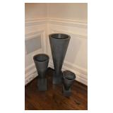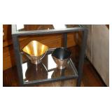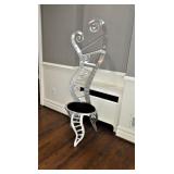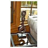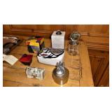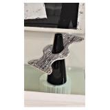 Christopher Royal Collection for Rockledge Design Studio aluminum scroll chair Alessandro Mendini for Venini 3 “Sidone” vases & bowl French silver overlay vase Set of 3 graduated cement trumpet vases Studio pottery jardiniere 3 handmade birch bowls Handmade bird drum 2 Australian walking sticks Sterling & silver-plate Large collection of beautiful vintage linens Collection of Dansk siverplate animals Art Deco windmill box Artist made stainless fish vase and trivets Aluminum fish platter Teak Platters Sets of black and silver chargers Michael Aram silverplated “Boat” pitcher Antique silver Toral finial Vintage Peruvian wood/sterling birds with cabochon stones Authentic carousel horse Black and white stripe woven rug, 11’4”x7’10” Jay Spectre for Paul Hanson 1980’s “Dianderie” table lamp Stage searchlight table lamp Plata Lappas Argentina large silverplated tray with leather handles Decorative Box collection Horn bowls Pair of Peruvian wood and sterling bird candle holders Kensington aluminum tea service and candle sticks Mackenzie Childs Antique silver Torah finial Serafinozani stainless bowl WMF copper Dinanderie vase Small Asian plaster bust Pair of Dorothy Thorpe lucite candlesticks Mirror with antiques brass frame Alessi black tray Charger plates Antique scale Michael Verheyden “When Objects Work” large black leather centerpiece bowl Starburst mirror Community “Coronation” silver plated flatware set Restoration Hardware crystal and silver rectangular table lamp Ettore Sottsass designed for Olivetti Valentine typewriter Restoration Hardware surveyor lamp & Spotlight lamp Large French Art Deco iron Mirror Vintage wood surveyors tripod Anna Abigail Brahms dolls Large collection of fine vintage linens Collection of design catalogs including Knoll & Artemide CHINA & CRYSTAL
