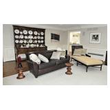 Charles Eames for Herman Miller Wire Chair – Set of 6 Charles Eames for Herman Miller Walnut Stools – Set of 3 Art Deco Chrome/Black side table Mid Century black barrel back chair with chrome cantilevered base Vitra Verner Panton pink plastic chair Vitra cork stool Wendell Castle white molar chair Gerard Van Den Berg for Montis turquoise Butterfly chair, c. 1980 Louis XVI reproduction mahogany/veneer chest with ormolu decoration by Swedish furniture maker Hilding Nilsson, dated 1954 Pair plaster palm tree torchieres after Serge Roche Polo Ralph Lauren queen bed w/ matching nightstands Philippe Starck for Kartell “Miss Balu” café’ table Quatraine white slipcovered sofa McCreary Furniture Mid Century-style white slipcovered sofa, chair and ottoman Acrylic stand w/ shelf Glass top sofa table with plaster column legs Mitchell Gold “Sebastian” tufted leather chesterfield sofa and ottoman Guy Chaddock-style sideboard Mahogany candlestick side table Pair of Italian leather suede trimmed club chairs with ottoman Pottery Barn brown leather sofa and pair club chairs Barbara Barry for McGuire chaise Ballard Designs mahogany media cabinet Antique oak pewter hutch Antique sideboard with bowed front and claw foot legs Custom white 59” round pedestal dining table Quatrine set of 6 slip covered dining chairs William Sonoma Set of 4 chrome and leather barstools Kartell “Max” table Fertuccio Laviani design Custom twin fabric covered bed Philippe Starck “Miss Baw” cafe table Custom white lacquered cabinet Hendredon carved queen bed Pair of Guido Zichele Italian nightstands Stand with porcelain platter top Vintage mahogany small bench Leather queen size bed Mission style bookcase with slate detail Faux fur bean bag chair Iron crib Hand painted Childs armoire Restoration Hardware all weather wicker table with 10 chairs DECORATIVE ACCESSORIES, ANTIQUES, & COLLECTIBLES