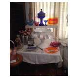 Due to the massive amounts of things this estate has we will be conducting multiple sales of the contents of this estate over the next several months. All of the items have been moved to this location. This is part 1 of the estate of Kaye Ross-Johns. You will not want to miss this one! This a sale quality antiques & collectibles as well quality home furnishings. Unusual Antique oak armoir / Murphy bed combo, large china cabinet, antique full size bed, Art Deco armoire, Antique bow front cabinet, Antique Gun Cabinet, Chest, Barrister Bookcase, Antique Sofa, Chair & Rocker, Dresser, Kitchen Table & Chairs, antique ice box, tables, plant stands, benches, Royal Dux Figurines, gray & blue Ironton Ohio Canning Crock, Rowe AMI Model R-82 jukebox, Flow Blue & Mulberry China (Clock, Some La Belle, Warwick "Cracked Ice" 23 1/2" vase/Jardinere Stand, Rare Florida 5 3/4" Pitcher, Tureens, Platters, Cup & Saucers, Sauce Servers, Teapots, Vases, Bowls, etc) Oak Store Counter, Dolls & Frozen Charlottes, lift chair, framed pictures, lamps (including a cut glass crystal lamp, GWTW lamps, Oil Lamps, etc), glassware (Crystal, Cup & Saucers, Cake Stands, American Fostoria Square Cake Stand, Anchor Hocking Wexford, Moon & Stars, etc), Longaberger baskets, china (Noritake, Blue Willow, Coaching Scene, etc), Delft China, antique wall phone, Mason Jars ( Lightening, blue, & hard to find Green), Occupied Japan, Jesse Stuart Books (some autographed), quality woman's clothing, Linens (quilts, afghans, tablecloths, bedspreads, etc), Books, Kitchrn Misc (Including a Kitchen Aid Mixer), & lots more!! As we move items we will add pictures and more descriptions. |
