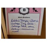 BHD Auctions LLC Presents Highlights – Sea Shell Art, Swords & Daggers, Vintage Cameras, Plumb Bobs, American Flyer Train Set, Sampler, Gold Silver & Costume Jewelry, Fiesta, Steins, Longaberger Baskets, Vintage Barbies and More This is a timed auction with Item 1 ending at 7PM on Thursday 01/20 and an item ending every 10 seconds there after. Change of Pickup Days Due to Weather (and limited parking because of snow) Pickup will now be Friday 1/21 10AM to 1PM and 6PM to 7PM Plus Saturday 9AM to 10AM Location 124 Primrose Alley Evans City, PA 16033.. Location 124 Primrose Alley Evans City, PA 16033. Go To www.bhdauctions.com To Bid Catalog: 1 Early Dovetail Painted Trunk 2 Violin Stamped Klotz Inside Says Aegidius Klotz Fecit Mittenwald w/ Wood Case 3 The Buescher Elkhart Ind Cornet w/ Case 4 Andreas Guarnerius Fecit Cremone Fub Titulo Sanctae Terefiae Violin 5 Sabre w/ Engraved Blade and Scabbard 6 Sword w/ Wood Handle Brass ? w/ Eagle Blade Stamped C Lombardi & Co NY 7 Sword w/ Wood Handle Wrapped w/ Leather, Engraving On Blade 8 Unusual Carved Wood Handle Dagger w/ Twisted Blade 9 Wood Frame Model Airplane 10 8 Drawer Spice Chest 11 Whitall Tatum & Co. Glass Jars w/ Lids - Chip On Lid Rim 12 Made In France Copper Dipper 13 Hand Forged Ladles 14 Primitive Gate Lock 15 Primitive Gate Lock 16 Cast Metal Boot Marked Wos Rona 52 17 Pair of Wood Plaques w/ Inset Cast India Relics 18 Star Shaped Sea Shell Art w/ Ship 19 Cast Bronze Girl w/ Basket Statue On Wood Base 20 Gorham Silverplate P&A Oil Lamp 21 Bohemian Bud Vase by Stellmacher Teplitz Circa 1905 22 Cast Iron Man On Jackass Mechanical Bank - The Book Of Knowledge Reproduction 23 Framed Sampler Dated 1831 - Age ? 24 Framed Sailing Vessels Artist Signed 25 Toulouse Lautrec Carnot Malade Lithograph 26 Assorted Costume Jewelry Necklaces 27 Assorted Costume Jewelry Necklaces 28 Bracelets and Earrings 29 Sterling Silver Jewelry - Approx. Weight 4.5 Oz. 30 10 Pins Including Spider 31 Carved Wood Tribal Figure and Totem Pole 32 Fiesta Pitcher In Blue 33 James Remind-O-Timer Model M 34 Assorted Wrist Watches - Elgin, Gruen, Benrus, Moren 17 Jewel, Lord Elgin 35 Vintage Books - Huckleberry Finn, The Clansman, Elements of Chemistry 36 Old Photographs 37 Early Ruby Glass Pitcher w/ Enameling 38 Early Coca Cola Bottle Canada 39 Wood Handle Sabre 17" Blade 40 Sword w/ Brass Handle 41 Middle Eastern Dagger w/ Leather Sheath 42 Telescope Handled Walking Cane 43 Herbrand PK105 Lock Blade Pocket Knife 44 Celluloid Bull Dog 45 Senator Ink Pen 46 8 Fiesta Plates - Ivory 47 Fiesta Pitcher and Bowl - Ivory 48 8 Fiesta Ivory Bowls 49 8 Fiesta Ivory Cups with Saucers 50 3 Fiesta Oval Serving Bowls 51 Fiesta Bread Plates, Berry Bowls and Celery 52 6 Fiesta Oval Shaped Dishes 53 3 Fiesta Plates w/ Oriental Woman 54 Metal Fiesta Teapot 55 Assorted Pinback Buttons 56 Joe Butcher Post No21 DFSV Flag / Banner 57 Toys - Mighty Mouse, Donald Duck Bank, Mickeys Air Mail Plane, Etc. 58 Jewelry and Thimbles 59 Assorted Cuff Links 60 1961 Salesman Sample Calendars 61 Kaeser K Line salesman Sample Calendars 62 K Line 1961 George Washington Calendars - Salesman Sample 63 K Line Salesman Sample Calendars 64 Vintage Metal Serving Trays, Taz Mug and More 65 NFL Gameday Magazines and More 66 Assorted Star Wars Toys 67 Smith Miller Smitty Toys Kaiser Sand & Gravel Mack Cement Truck - New In Original Shipping Box 68 Gull Wing Bow 69 Fiesta Style Orange Pieces 70 Brass Plumb Bobs - Craftsman 71 Assorted Oilers - GEM, Eagle 72 Assorted Oilers - Eagle 73 Vintage Nikon Cameras w/ External Flashes 74 5 Vintage Cameras - Falcon Miniature, Herold Flash Master, Rolleicord, PD15 Clipper and Ansco Pioneer 75 5 Vintage Cameras - Kodak Vest Pocket Series III, Spartus 76 2 Mamiya 1000 DTL Cameras 77 4 Vintage Cameras - Brownie Hawkeye, Ansco, Kodak Duaflex II and Kodak Brownie Starmatic 78 Victorian Balloon Back Arm Chair 79 Child's Step Back Cupboard - Hinges Needs TLC 80 Iron Headboard 81 2 Vintage Snowsleds - Flexible Flyer Airline Jr. 82 Simmons Astronomical Refractor Telescope 83 Barbie Midge Dated 1962, Barbie Dated 1966 Plus Assorted Clothing Including Some Black Label w/ Case 84 Barbie Doll Dated 1963 w/ Clothing and Case 85 Barbie Skipper Case w/ Black Label Clothing and 3 Small Dolls 86 Beswick England Beatrix Potter Mrs. Tiggy Winkle (2) and Mrs. Ribby Figures 87 4 Beswick England Porcelain Beatrix Potter's Figures 88 3 Beswick England Porcelain Beatrix Potter Figures 89 RS Prussia Hand Painted Berry Bowl Set - Large Bowl Has Hairline, 1 Small Bowl Has Chip 90 Assorted Hand Painted Berry Bowls 91 S. Kirk & Son Sterling Silver Plate - Approx. Weight 15 Oz. 92 Fisher Sterling Silver Weighted Compote 93 Schliff Juan Crystal Stems, Vicomte Pattern Assorted Sizes 94 Noritake Contemporary Fine China Blue Hill Pattern 95 Primitive 1 Drawer Harvest Table, Peg Construction 96 Ladder Back Rush Seat Chair 97 Rush Seat Childs Chair 98 Primitive Milking Stool 99 Large Green Glass Blown Bottle 100 Sea Shell Art w/ Dome Glass Center Sailing Ship Scene 101 Horse Shoe Shape Sea Shell Art 102 Sea Shell Art w/ Seamen In Life Boat 103 Heart Shaped Sea Shell Art Standee w/ Photograph 104 Sea Shell Art Vanity 105 Glass Decanter w/ 2 Glass Stamped w/ US Eagle Seal 106 Portable Balance Scale 107 Globe Bank and Assorted Miniatures 108 Greek Maiden Statue 109 Sheath Knife 110 Anker-Sport 21 Rubis Wasserdicht and Gruen Curvex Watches 111 Assorted Paper Items 112 Dr. Kilmers Swamp Root Medicine Bottle 113 Brass Pipe and Other ?? 114 Indian Style Rug 115 Mahogany Game Table 116 Victorian Marble Top Table 117 2 Tier Metal Stand 118 2 Tier Plant Stand 119 Hoop Back Chair and Childs Rocking Chair In Black Paint 120 Modern Display Cabinet 121 Black Lacquered Gold Decorated Plank Seat Chair 122 4 Tier Spindle Display Shelf 123 Barrel Back Wheat Motif Chair 124 Early Pastel Family Portrait In Ornate Gold Frame 125 Assorted Oilers - GEM, Singer 126 Assorted Oilers - Plews, GEM 127 Assorted Oilers - Eagle 128 Orie