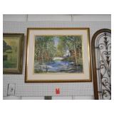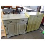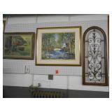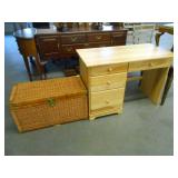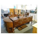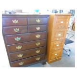 FURNITURE: 8 pc cherry DRS, chests of drawers, nice oak 4 drawer file cabinet, office chairs, 1/2 round hall table, desks, night stands, occassional tables, 5 pc tile top patio set, book shelves, 3 pc bestro set, marble top lyre table, wash stand, bow front display cabinet, reclier, 5 pc DRS, cedar chests, small corner cupboard, 12 pane corner cabinet, hutch top dry sink, decorative server, antique grandfather clock, 6 pc modern DRS, Moosehead Beer boat shelf, glass front bookshelf, dividing screen, spindleback piano stool with ball and claw feet, pictures/prints/mirrors, lamps, wall clocks,