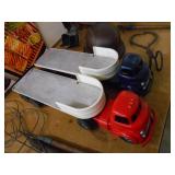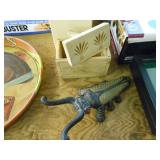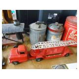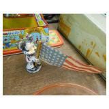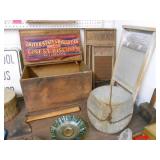 ANTIQUES/COLLECTABLES & MISCELLANEOUS: Copper bucket, ephemera, old photos, cups and saucers, Annalee and Buyer's Choice, Goebel animal figures, costume jewelry, knight's helmet/shin guards and gloves, Polar Express by Lionel, circus posters, carnival glass, depression glass, Disney Monorail, Chein Mickey Mouse Ferris Wheel, vintage fishing creel, flow blue, crocks, jugs, advertisig tins, vintage lunch boxes, assorted kero. lamps, tube radios, cream cans, old snare drum, marbles, Accordian by Excelsior, double gumball machine with stand, primitive writing desk, Gone With the Wind lamps, gingerbread clock, old Planter's Peanut jar, nice assortment of primitives, 45's, albums, cameras, cook & bakeware, small appliances, pyrex nesting bowls, Nazi pins, Redlines, flatware, Longaberger baskets, stamps, boxes of new socks, assorted frakturs, Greyhound wagon, area rugs and runners, quilt top & quilt, TV's, transister radios, signed Hunter Barmes books, remote control cars, enamelware, 1896 Civil War book, metal buggy step, two Wyndotte trucks, Keystone shovel, Buddy L fire truck, WWII posters, paperweights, Hossier jars, Murray pedal tractor-rough, fire dept. pedal car, linens, board games, clarinet, handing scale, vintage calendars, post cards,