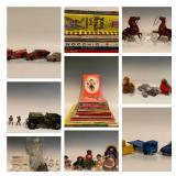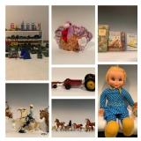 Come browse an amazing selection of toys from yesteryear. From soft and tender Mrs. Beasley to ruff 'em up Cowboys and Bank Robbers. Games that will bring back your inner child and books that you need to read to your grandchildren. Highlights include-Vintage dolls including Mrs. Beasely from A Family Affair, Vintage books, Phoenix Pottery, Vintage army toy sets, Matchbox cars, Beanie Babies, Bonanza Range Horse, Bonanza Characters, and more!