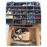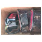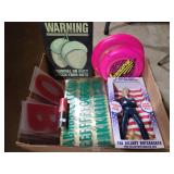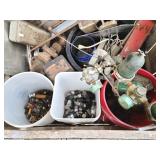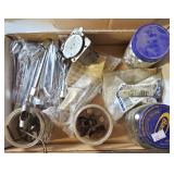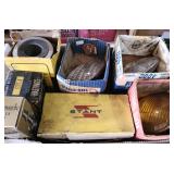 186 Bowling Ball, Window Screens, Red Plastic Milk Crate, Muffler Clamps, Jack, and Miscellaneous.