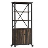 - Featuring a storage cabinet with accessibility from both sides, a large, easy-glide pass-through drawer and open storage shelves,