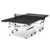 - TOURNAMENT QUALITY AT HOME: Competition-grade 9x5 foot regulation size indoor table tennis table and net set perfect for your home, office or community center. Table Top Material- Wood surface. Leg Material- Steel