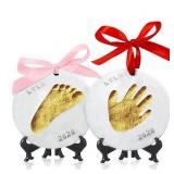 Baby Handprint Footprint Ornament Keepsake Kit - Personalized Baby Prints Ornaments for Newborn - Baby Nursery Memory Art Kit - Baby Shower Gifts, Christmas Gifts (Glaze Finish)