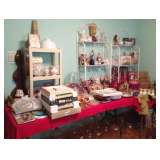 Due to the massive amounts of things this estate has we will be conducting multiple sales of the contents of this estate over the next several months. All of the items have been moved to this location. This is part 3 of the estate of Kaye Ross-Johns Antique Bow Front Cabinet, antique lead glass Cabinet, Cast Iron (Griswold & Wagner), Treadle Sewing Machine, Mirrors, Cast Iron Hall Tree, Victrola, Antique Oak Chest, Antique Dresser, Blue Garland China, Crystal, Glassware (Fenton, Antique pattern Glass, Early American Pres Cut, etc), Brass Cherub Lamp, Floral Bowls, Pottery, Linens & Quilts, Pictures, Costume & Fine Jewelry (Ruby & Diamond Necklace, Diamond Rings, Sterling Jewelry, Gold Jewelry, etc), Flow Blue & Mulberry China, Quality Women's Clothing & Accessories, over 100 Cookbooks, Kitchen & Household misc, and tons more! we are still working on this sale unpacking dozens of boxes and we have no idea of the contents so check back for more info! |