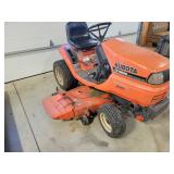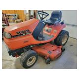 Kubota riding mower TG 1860G yard tractor with power steering (1078hrs), yard tools, hand tools, ramps, aluminum truck bed tool box, shelving organizer, Husqvarna DRT900H rear tine tiller, chains, early buggy seat, ext cords, drill bits, skil tile saw, household decorative pieces, home interior decor, Boyd's bear collection (new in boxes), 3ft Boyd's stuffed bear, early train set, end tables, boxes of hand sanitizer gel, boxes of hand sanitizer spray, new bed frames & box springs (Amazon, lowes, etc products), child gates, yard sprinklers, candles, puzzle prints.