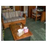 This End Up Love Seat, End Table & Desk, Newer Barrister Bookcase, Antique Oak Armoire, Lester Piano w/Bench, Magnavox Flat Screen Television, Queen Brass Bed, Rocking Chair, Painted Wooden Chest, Mid Century Table Lamps, Swag Lamp, Glassware, Vintage Bavarian Bone China, Costume Jewelry, Pottery, Braided Area Rugs, Wall Tapestry's, Copper Boiler, Some Primitives, Stoneware Crocks, Dress Form, Antique Singer Sewing Machine In Dome Top Case, Table Top Weaving Loom, Fireplace Tools, Radio Flyer Wagon, Lawn/Garden, Shop Vac, Aluminum Extension Ladder |