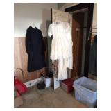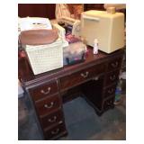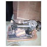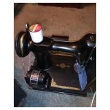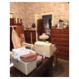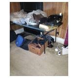 Sewing machines, one Singer Featherweight, one lightweight portable, and there other sewing machines, sewing supplies, fabric, notions,