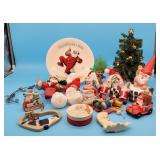 4 - Christmas Lot - Wooden Sleigh, Lemax Figures, Sant Christmas Lot - Wooden Sleigh, Lemax Figures, Santas Condition: Mostly good condition. Santa gourd is 11" tall. Shipping Method: Standard 5 Pounds or More Weight (#s): 8 Weight (Ozs): 0