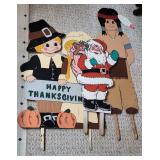 2 - 3 Holiday Decoartion Lawn Ornament Stakes Santa Pi 3 Holiday Decoartion Lawn Ornament Stakes Santa Pilgrims Indian Thanksgiving Christmas Condition: Pilgrim head has been repaired, please see photos Indian is 36.5" tall (without stake), Pilgrim is 32" tall (without stake), Santa is 24" tall (without stake) Shipping Method: No Shipping