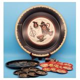17 - Tin Toleware Serving Trays & Coasters PA Dutch Flo Tin Toleware Serving Trays & Coasters PA Dutch Florida Condition: good overall condition large tray is 19" wide, Florida tray is 10.75" dia Shipping Method: Standard 5 Pounds or More Weight (#s): 5 Weight (Ozs): 0