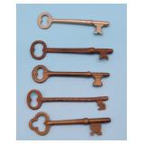 26 - Skeleton Keys (5) Skeleton Keys (5) Condition: Good condition Approx 4" across. Shipping Method: First Class - Free Weight (#s): 0 Weight (Ozs): 5