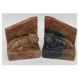 43 - Carved Stone Bookends w African Animals Items measure 5" tall by 4" by 2.5". Condition: Good condition. Carved Stone Bookends w African Animals Shipping Method: Standard 5 Pounds or More Weight (#s): 6 Weight (Ozs): 0
