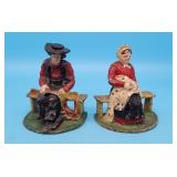 45 - Cast Iron Amish Man & Woman On Bench Book Ends Cast Iron Amish Man & Woman On Bench Book Ends Condition: Good to fair condition, some paint loss. 4.5" tall. Shipping Method: Standard 5 Pounds or More Weight (#s): 5 Weight (Ozs): 0