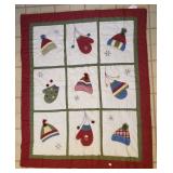 53 - Small Cotton/Poly Quilt w Winter Theme Design Item measures 4' by 5'. Condition: Good condition. Small Cotton/Poly Quilt w Winter Theme Design Shipping Method: Standard 4 Pounds or Less Weight (#s): 2 Weight (Ozs): 0