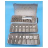 54 - 3 Vintage Aluminum Ice Cube Trays Quickube 3 Vintage Aluminum Ice Cube Trays Quickube Condition: good overall condition, some pitting, please see photos 11.5" x 4.5" Shipping Method: First Class - Free Weight (#s): 0 Weight (Ozs): 0
