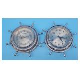 66 - Yachtmaster Ships Wheel Clock & Barometer Set Chro Yachtmaster Ships Wheel Clock & Barometer Set Chrome Condition: unrestored, please see photos 8" dia Shipping Method: First Class - Free Weight (#s): 0 Weight (Ozs): 0