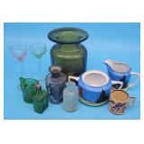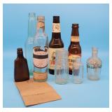 47 - 5 Vintage Glass Bottles Jar Medicine Brown Green W 5 Vintage Glass Bottles Jar Medicine Brown Green Water Wheaton Condition: largest brown bottle is 5" tall, Green water bottle is 9" tall 0 Shipping Method: Standard 4 Pounds or Less Weight (#s): 4 Weight (Ozs): 0
