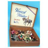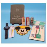 19 - Dresser Box w Pins, BSA Patch, M&M's Watch, Eaton Dresser Box w Pins, BSA Patch, M&M's Watch, Eaton Playing Cards, MASH EMPTY Wax Packs+ Condition: Good to fair condition. 0 Shipping Method: Standard 4 Pounds or Less Weight (#s): 3 Weight (Ozs): 0