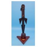 789 - Antique Muskateer Bronze Finish Statue Sculpture S Antique Muskateer Bronze Finish Statue Sculpture Signed Condition: good condition, please see photos 22.25" tall x 7.5" dia Shipping Method: First Class - Free Weight (#s): 0 Weight (Ozs): 0