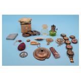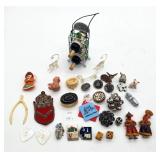 Christmas and Seasonal Lots including Laved Italian Christmas Ornaments, Silvestri 12 Days of Christmas Ornaments, Precious Moments, Cherished Teddies, Porcelain Tea Cups, Toleware Serving Trays, Dresser Box Lots, Alpine Blue Glass Misting Fountain, Rip Van Winkle Toby Head jug, Decorative Asian Ware Bowls and Other, Natural Coral, Seahorse Specimen, Book Ends, Folk Art Chair, Small Quilt, Picture Frames, Halloween Blow Mold, Taxi Driver Hat Pin, Boy Scouts of America Neckerchiefs, Perfume Atomizers, Pencil Sharpener, Princess House Crystal Figurines and Snowmen Cookie Jars, Advertising Tins, Borax Sign, Pinbacks, Buttons, Patches, Coke Collectibles, Coca-Cola Syrup Gallon, Glasses, Slot Machine Glass Insert, Playing Cards, Coach Bag, Kate Spade Purse, Men’s Shoes. Cast Iron Pans, Rolling Pins, Agate Tea Kettles, Syrup Dispensers, Kitchen Molds, Wilton Platters, Vintage Aluminum Ice Cube Trays, Glass Rolling Pin, Cookie Jars, McCoy, African American Shaker.