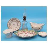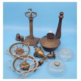 784 - Mixed Lot of Oil Lamp Parts & Pieces, Lamp Base Mixed Lot of Oil Lamp Parts & Pieces, Lamp Base Condition: As is for parts, repurpose or repair. 13.5" tall base. Shipping Method: Standard 5 Pounds or More Weight (#s): 12 Weight (Ozs): 0