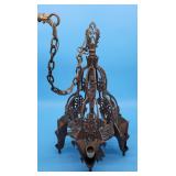 779 - Ornate Metal Chandelier Parts Ornate Metal Chandelier Parts Condition: As is for parts, repurpose or repair. 14.5" tall. Shipping Method: Standard 4 Pounds or Less Weight (#s): 4 Weight (Ozs): 0