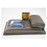 BHD Auctions LLC Presents Early Highlights – Masonic Items, Machinists Tool Chest, Vintage Cash Register, Miners Items: Safety Lanterns Graniteware Pails, Swarovski Crystal, Jewelry, Toys, Christmas, Cast Iron Pieces, Pyrex, More to Come! This is a timed auction with item 1 ending at 7PM on Thursday February 17 and an item ending every 10 seconds there after. Pickup of items is Friday 2/18 10AM to 1PM and 6PM to 8PM. Location 124 Primrose Alley Evans City, PA 16033. Go To www.bhdauctions.com To Bid Catalog: 1 Antique Dovetail Seaman's Chest 2 Oak Machinist's Chest - Restored 3 Railroad Signal Light 4 Trippensee Planetarium 5 Davis Furniture Company Solid Cherry 17 Drawer Secretary Desk w/ Flip Out Writing Surface 6 Key Wind Grandfather Clock In Oak Case 7 Mahogany Table w/ Inlay 8 Leather Top Writing Desk w/ Victorian Carved Chair 9 10 Large Wood Antique Tool Chest In Paint 11 Lighted Curio with Mirrored Back 12 Vintage National Cash Register 13 Linemar Battery Operated Remote Control Jet Plane with Original Box 14 Andy Gard Remote Control Battery Motor Powered Telephone Truck with Original Box 15 Tin Litho Battery (?) Car 16 Georgetown Galleries Mahogany 1 Drawer Stand 17 Wicker Steamer Trunk Marked GR 18 Restored Flat Top Wood Banded Trunk w/ Till 19 Flat Top Wood Banded Trunk (Thin Version) 20 Ceremonial Masons Sword w/ Leather Sheath - Molilley Co. 21 Copper Clad Masons Bookends 22 Pair of Syria Treasurer Caravan and Kena 1981 Director Caps w/ Leather Cases 23 Assorted Masonic Items 24 Swarovski Crystal Dragon w/ Original Box 25 Swarovski Crystal Masquerade Pierrot w/ Original Box 26 Swarovski Crystal Sister Bear w/ Box 27 Swarovski Crystal Dog and Phone w/ Boxes 28 Miners Lunch Pail - Enamel Lid 29 Miners Lunch Pail 30 Koehler Permissible Miners Safety Lantern No.209 31 Miners Hard Hat and Leather Belt 32 B&O Railroad Lantern 33 PRR Railroad Kerosene Can 34 Black Forest Stag Carved Shelf 35 Fishing Sinker / Split Shot Tin Display 36 The Perfecscope Viewer and Cards 37 Gilchrist's No.31 Ice Cream Scoop 38 Celluloid Windup Dancing Couple 39 J. Chein Tin Litho Uncle Wiggily Rabbit Bank 40 Vintage Dick Tracy Wrist Watch 41 Assorted Comic Books - Shanna She-Devil, Sorcery, Suspense, Hulk, Etc. 42 Marilyn Monroe Nude Pinup 1953 Calendar 43 Black Americana Stepin Fechit Postcards - Autographed 44 Black and White Car Pictures and Cards 45 Smoke Set ? 46 Sky Kings Tele-Blinker Ring - Promo 47 The Beatles Plastic Coin Pouch 48 Hop A Long Cassidy Ring 49 Tortoise Shell Snuff Box 50 Stanley No. 36 1/2 Rule and Other 51 3 Rulers - Masterrule and 1 Advertising 52 PSL Sniper Scope 53 Small Indian Style Rug 54 G Scale Santa Fe Diesel Engine 2592 and 250 55 G Scale Santa Fe A.T. & S.F. R.R. No 52 Steam Locomotive and Tender 56 3 G Scale Flat Bed Train Cars 57 Large Elite Enamelware Coffee Pot 58 Large Copper Dovetail Construction Apple Butter Kettle 59 Enamelware Miners Lunch Pail 60 Enamel Ware Cream Can 61 Brass Blade Dayton Electric Fan Type 367 - Untested 62 R&M Vintage Electric Fan 63 Underwood Standard Typewriter No.5 64 Oliver Typewriter Co. No. 9 Typewriter 65 Parsifal Melodeon Button Box 66 2 Harmonicas, Guitar Strings, Tambourine and Ocrina 67 Roseville Pottery Vase 68 Roseville Pottery Planter 69 Swarovski Crystal Unicorn w/ Box 70 Swarovski Crystal Masquerade Harlequin w/ Original Box 71 Swarovski Crystal Starfish and Shell 72 Globe Automatic Sprinkler Co. Brass Gauge 73 Andy Gard Remote Control Battery Motor Powered Brink's Armored Car with Original Box 74 Marusan Toys Japan Tin Friction Car 75 1966 Chevrolet Impala Promo Car 76 Antonius Stradivarius Violin w/ Case 77 Made In Elkhart Trumpet R10985 78 CGCONN LTD Saxophone 6M VIII A 291667 L 79 Resonator Acoustic 6 String Guitar 80 Betsy Ross Child's Sewing Machine w/ Original Box 81 Mitzi Ideal Doll w/ Clothing Including Some Ken Doll Black Label and Case 82 Thimble Drome P-40 Warhawk Model Airplane - LM Cox 83 USA Trains 44 Ton Switcher - G Scale 84 George and Martha Washington Print In Frame 85 Copper Kettle w/ Brass Handle 86 Extra Agate Nickle Steelware Mold 87 C.S. Osborne & Co. Single Blade Chopper 88 Battery Operated Vintage Robot 89 Tin Litho Friction Monkey On Motorcycle 90 Tin Litho G-men Motorcycles and Rocket Race Car 91 Maji Japan Tin Litho Friction Vehicles 92 Cast Iron Stake Bed Truck 93 Barbie Teenage Fashion Model Wrist Watch w/ Extra Bands Set w/ Case No.3084 94 Belknap #8 Cast Iron Waffle Iron w/ Base 95 Wagner Ware #12 13 1/2 " Cast Iron Skillet 96 Griswold #9 Cast Iron Griddle 97 Wapak #8 Cast Iron Skillet 98 Primitive Wood Butter Press 99 Pair Stoneware 3 Stripe Mixing Bowls RRPCo. 100 Scene Decorated Tilt Top Card Table 101 Small Mahogany Drop Leaf Table 102 Primitive Wood Storage Box - Lid has split 103 Cram's Imperial 12" World Globe 104 Ornate Oak Frame w/ Portrait 105 Ornate Frame w/ Portrait 106 Cherub Scene Print In Frame 107 Atari Video Game System and Games 108 Vintage Hopalong Cassidy Board Game - Copyright Wm. Boyd 1950 109 Pair of Toy Halco Buffalo Bill Pistols w/ Holster 110 Nash Airflytes - Cardboard Cars and Building ? Dealer Promo 111 Alpine Station Marke Jechnofix w/ 2 Cars - Made In Western Germany 112 Japan Tin Car 113 Box of Assorted Advertising Print Blocks 114 G Scale Union Pacific Diesel Locomotives 2005 (2) and 2055B 115 5 Piece Nesting Mixing Bowls 116 2 Daisy BB Air Rifles and 3 Toy Guns 117 Large Stack Sex to Sexty Adult Comic Books 118 Adult Novelties - Cast Iron Frogs, Doll and Man In Barrel 119 Enamelware Green and White Swirl Coffee Pot 120 McKee Jadeite Tea Canister w/ Lid 121 Baltimore and Ohio Railroad Thomas Viaduct 1835 Bowl Shenango China 122 Silver Seal Aluminum Ware Kettle 123 Assorted Pocket Knives - Browning, Imperial, Buck 124 4 Sheath Knives Including Schrade Walden and J Marttiini 125 Stanley Line Level, Rule No.3 Plus 2 Other Rules 126 Washington AAA County Motor Club Porcelain Tag 127 US and Longines-Wittnauer Compasses 128 Gem Kerosene Can and Torch 129 Koehler Permi
