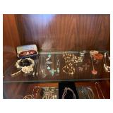 MASSIVE COLLECTION OF JEWELRY SETTING A STORE IN DINNING ROOM TO DISPLAY ALL.