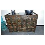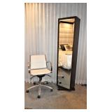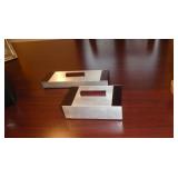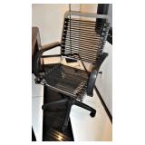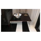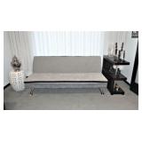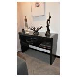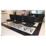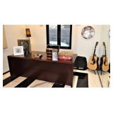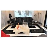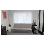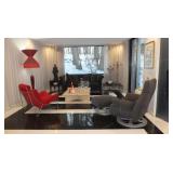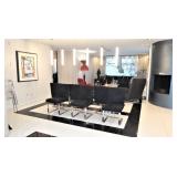 Antonio Citterio for B & B Italia “Sity” Modular sofa Piotr Sierakowski for Koch & Lowy “Mirage” glass top coffee table Line Roset reclining lounge chair and ottoman Leolux red ultrasuede lounge chair w/ powder coated iron frame Mid Century Italian 2 pc tiered marble coffee table Set of 8 Milo Baughman style chrome flat bar dining chairs Pair Mid Century thick lucite folding chairs Pair Linge Roset mahogany frame arm chairs Custom white lacquer credenza Mid Century style cowhide chrome bench Ceramic garden seats Espresso console table with glass top White leather side chair with nailhead detail Gray ultrasuede convertible sofa with chrome legs 3 tier modern side table Indonesian teakwood cabinet with mirrored tiles & sawtooth detail Mission oak glass door front bookcase Primitive style wood cabinet with lattice front doors Mahogany framed arm chair with canvas upholstery Large white lacquer ornate mirror Black Velvet Tuxedo sofa Zebrawood side table with open shelf Mid Century chrome coffee table w/ walnut top Small tessellated stone chest on iron stand Faux alligator skin covered writing table/console table with drawers Mahogany Greek key base bench Revolving walnut columnar mirror/bookcase Mahogany executive desk Bungee office chair ART