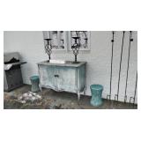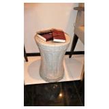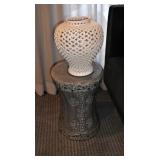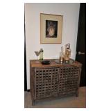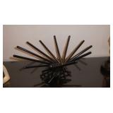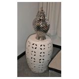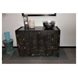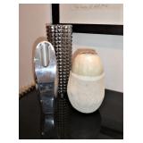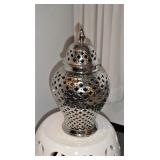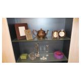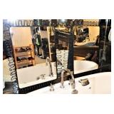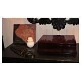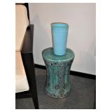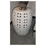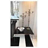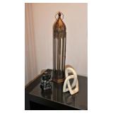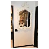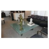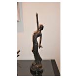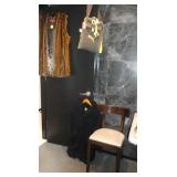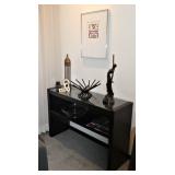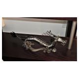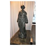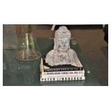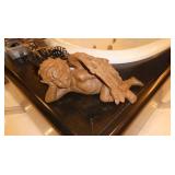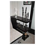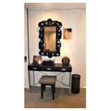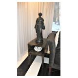 Blenko glass Terra cotta goddess head Pair of carved wood religious figures Etched vase Andy Warhol plates and mugs Large architectural planters Art glass Carlo Contin Satellite bowl African carved wood figures Chrome dragon figure 2 aluminum floor candelabras Bronze finish classic goddess statue Vintage retro mahogany based floor lamp with custom red shade Black lacquer ornate mirror Jewelry boxes Pavel Datsyuk signed photos Barware Several sets stainless flatware CHINA & CRYSTAL