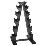 Holds 200 pounds - Designed to hold 5 pairs of cap hex or rubber hex dumbbells ranging from 5 to 25 pounds; Mix and match your dumbbells to fit this rack, up to 35 pounds pairs; Some combinations may not fit **BRAND NEW Please, come in to preview and examine. Retail Value $43.99