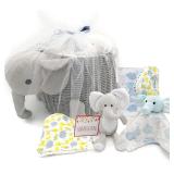 BEAUTIFULLY WRAPPED - Arrives gift ready, beautiful elephant gift basket wrapped in wrapping paper with a gift card. ⭐ BABY ELEPHANT THEMED- Includes elephant toys, blankets, wash cloths, and bibs. A full elephant essentials set. **BRAND NEW Please, come in to preview and examine. Retail Value $54.99
