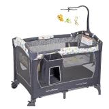 Removable full size bassinet Handy diaper stacker and mobile One hand locking mechanism Easy to move with locking wheels Easy compact fold **BRAND NEW Please, come in to preview and examine. Retail Value $89.99
