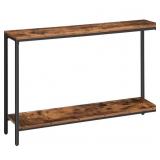 Particleboard and Metal Narrow Console Table: Vintage wood panel and black metal frame smartly form this entryway table that is simple yet sophisticated. Time to say goodbye to the small and old one and bring a new hallway appearance. Narrow Fit: Sized in 47.2” x 8.7” x 29.5”. **BRAND NEW Please, come in to preview and examine. Retail Value $109.99