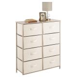 188.. mDesign Storage Dresser Furniture Unit - Tall Standing Organizer for Bedroom, Office, Living Room, and Closet - 8 Slim Drawer Removable Fabric Bins - Cream/Gold