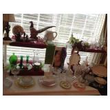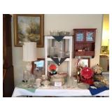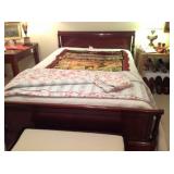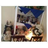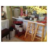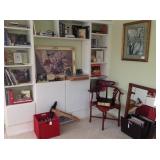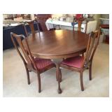 Furniture: 120 pieces Queen Anne style round table table with 4 matching chairs Camel back sofa with feather cushions Tufted long bench Pair tall wing back chairs C R Laine sofa Antique walnut low table Mahogany open pediment slant front secretary with glass bookcase 2 depression era arm chairs Set 4 1960's dining room chairs Antique oak slant front 3 drawer desk Dark table with pull out leaves Storage 2 door low cabinet Caned bottom antique chair Desk with bookcase hutch 2 wing back chairs Blonde small table Showcase top end table Rush bottom stool Bench padded seat with storage cubes Set 4 black Rush bottom ladderback kitchen chair antique ribbon mahogany arm rocking chair pair light wood bar stools Antique oak curved glass china cabinet Depression era small wardrobe with pull out drawers & hanging bar Depression era 4 drawer chest of drawers Maple desk/dresser with matching mirror Off white arm chair Maple chest of drawers Manor house dresser with secret hidden compartment, mirror, poster bed with open pediment, mattress, and matching bedside table Pelman Shell and Leckie cherry stand with marble top Queen Anne style wood sewing machine cabinet with matching storage stool Two small odd stools Small Dark oak glass China cabinet Round pedestal table Depression Era cedar chest Another cedar chest on legs ladder for bunk beds 5 shelf bookcase 26 x 26 antique pedestal table Medium size Gilliam red sofa Set of three Windsor style oak kitchen chairs Red white and blue large oval braided area rug Set of four Bentwood chairs with cane seats Antique side-by-side oak secretary bookcase with beveled Mirror 2 Antique small low square oak tables Needlepoint stool Dark red painted twin bed with rails and slats Windsor style armed rocking chair Antique pump organ with swivel stool R-way L shaped office desk Two wooden yard benches Four shelf high wood bookcase Antique oak curved glass China cabinet with beveled Mirror Antique Spindleback side chair with pressed bottom Chop block