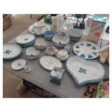 BLUE AND WHITE HEART STONEWARE DISHES